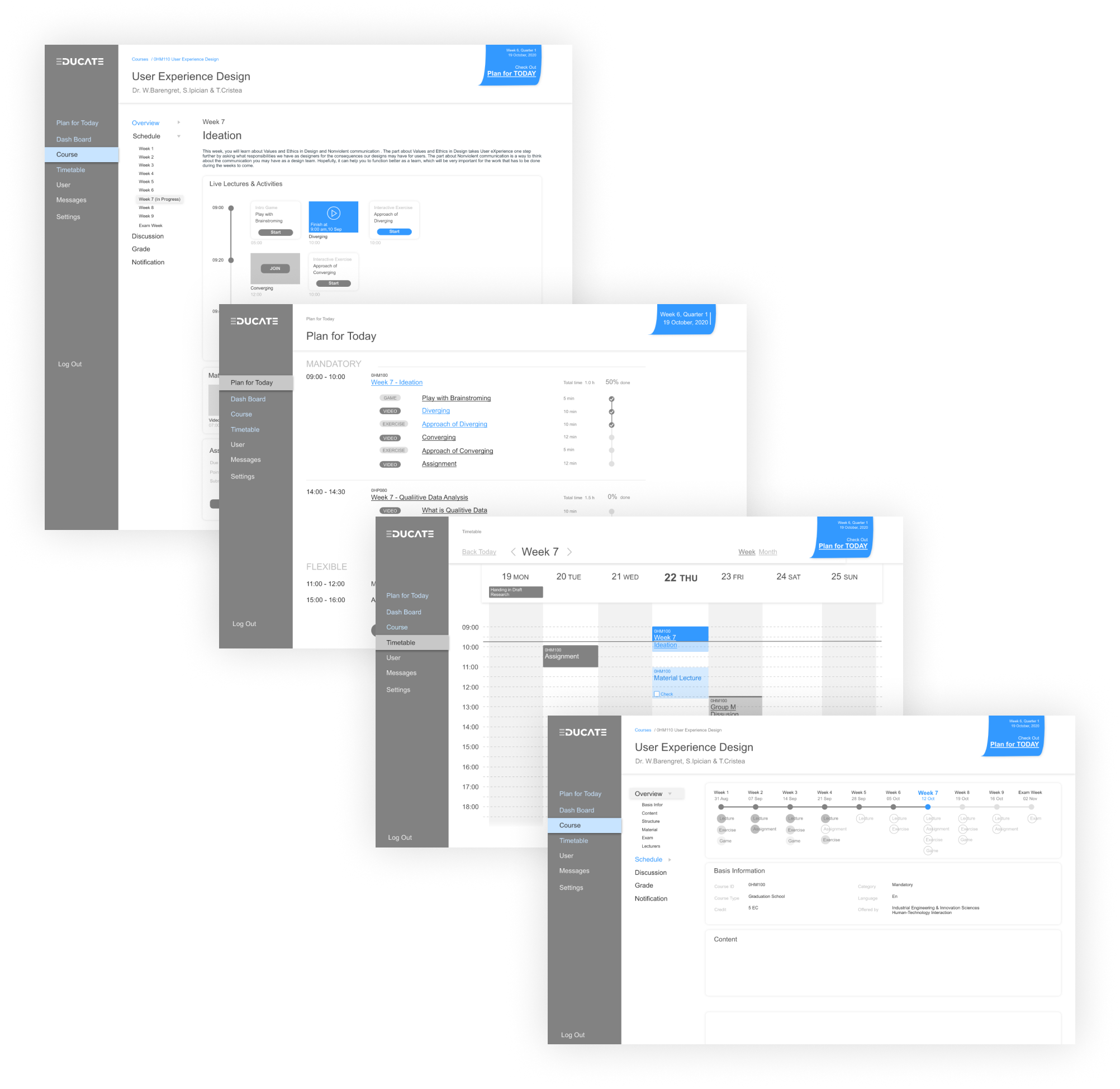 During the covid-19 epidemic, the way people live, learn and socialize has changed a lot. In this project our team, through interviews, concluded that the most urgent and valuable pain point to change is the decrease in motivation and efficiency of learning caused by students not adapting to online class habits. Based on this pain point, we designed the E-ducate online learning platform, which combines multiple forms of feedback to stimulate students' interest in learning and classroom integration.