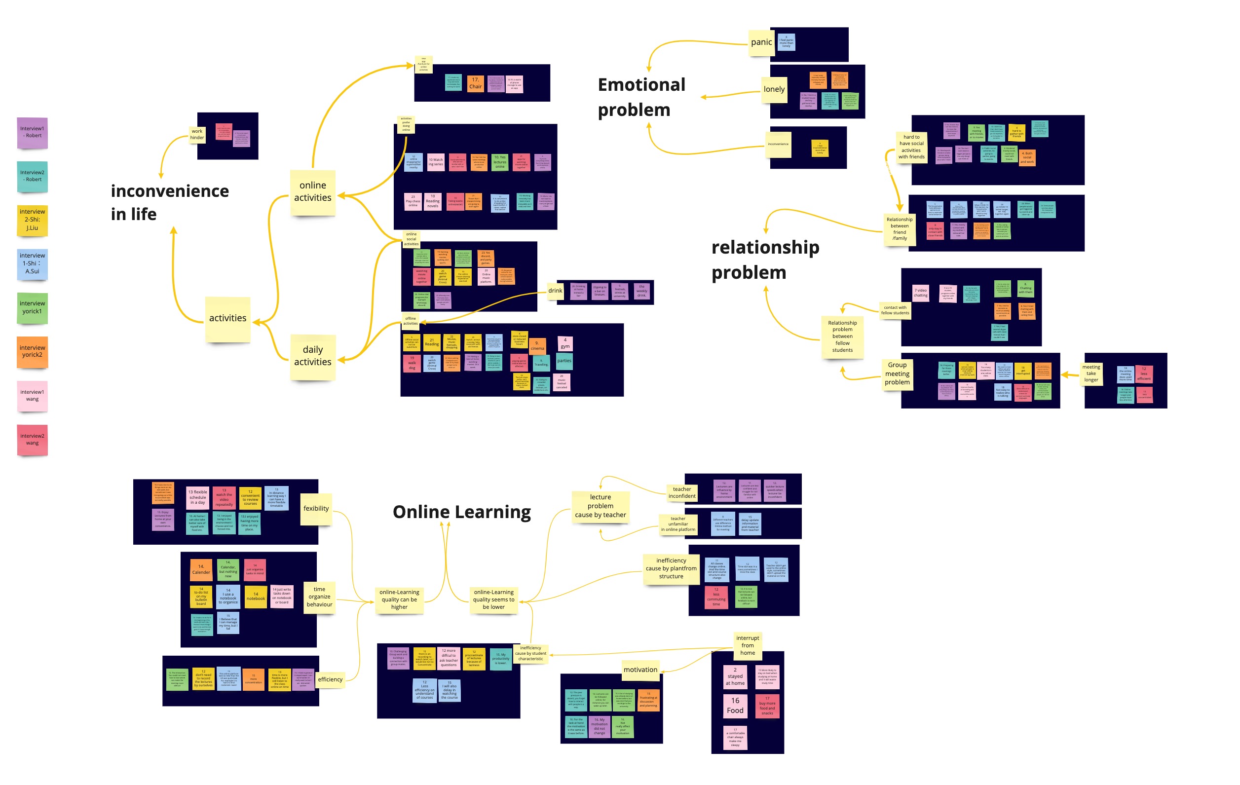 We fragmented and coded all the interview information to create an Affinity Diagram. We clustered their comments into themes and extracted user pain points from them.