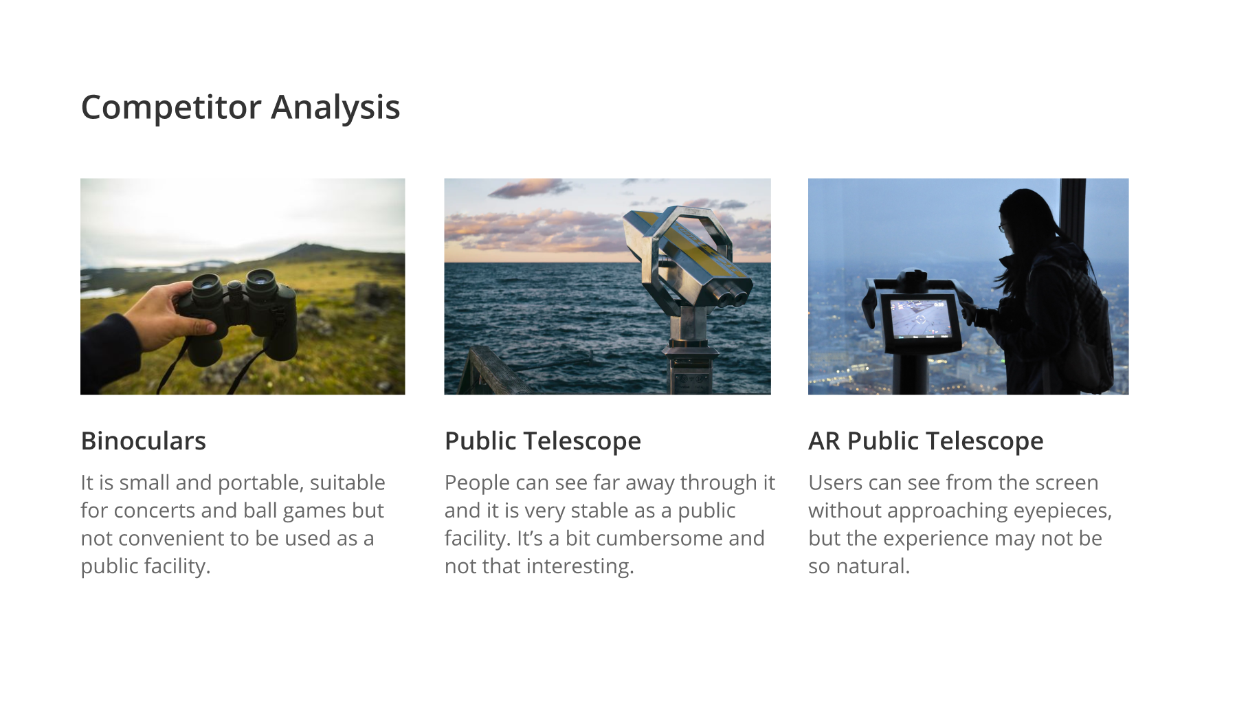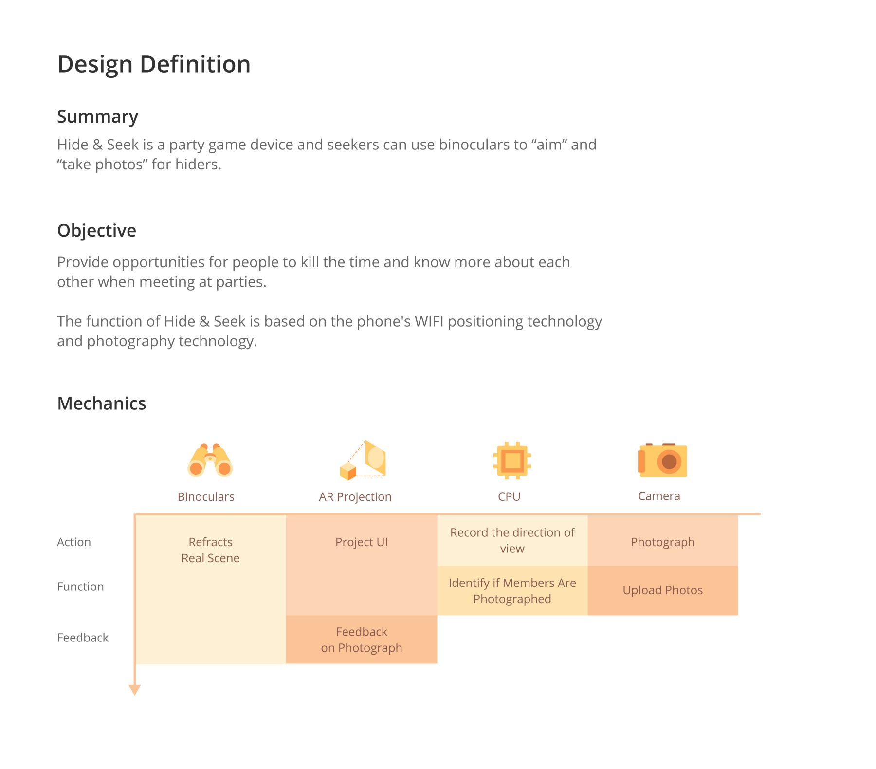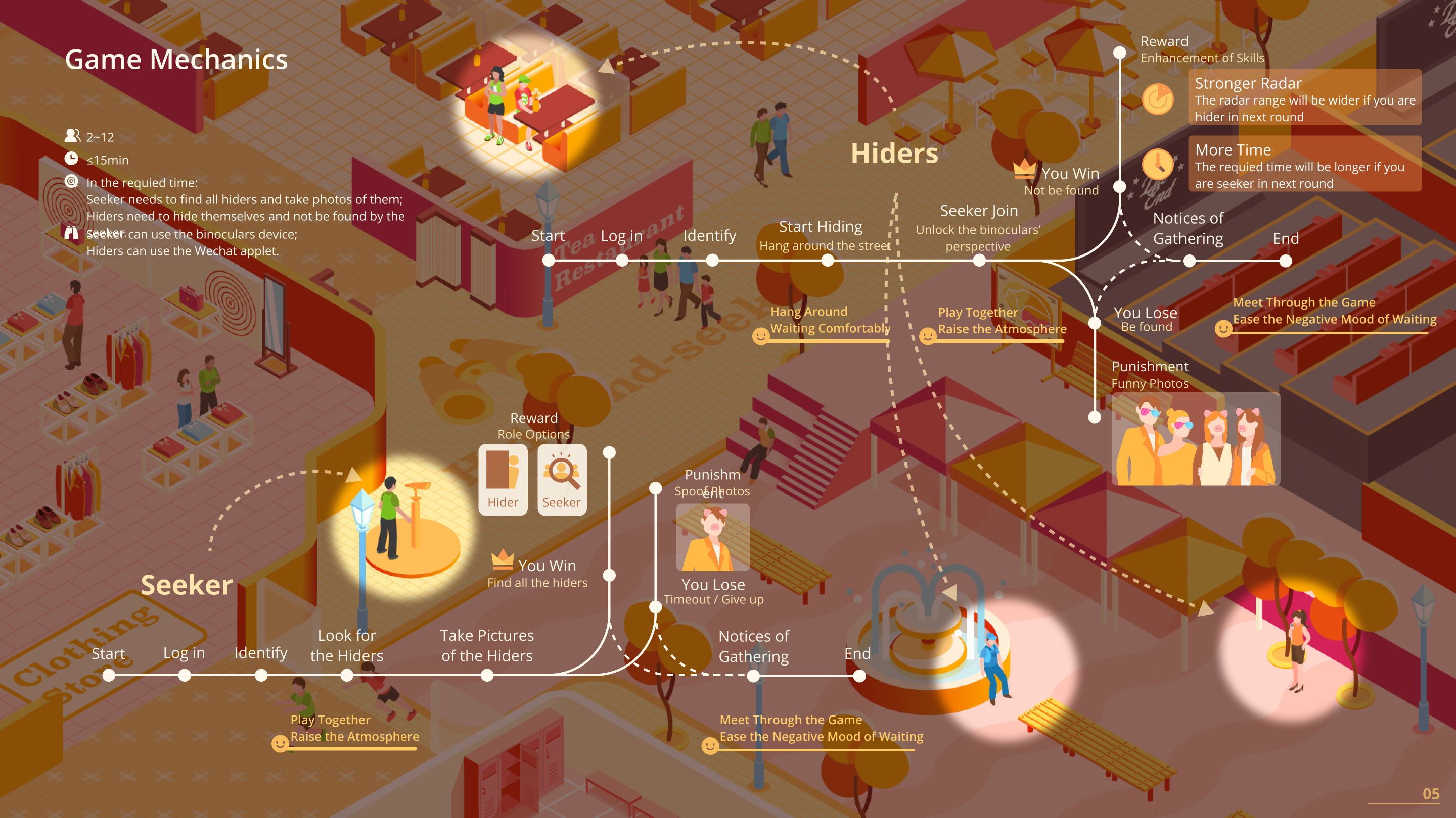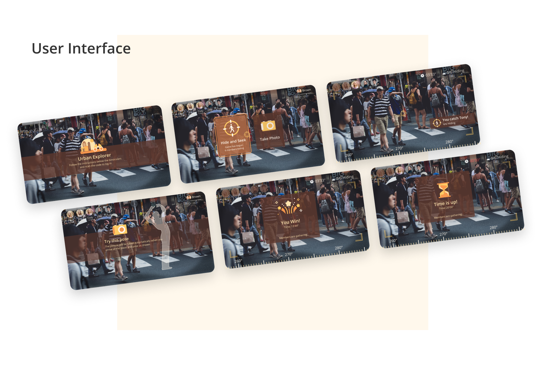 This AR functional device provides functions like Hide & Seek game for street tourists. The experience of waiting for a party can be ameliorated through interactive games and people can perceive the city better by taking photos.